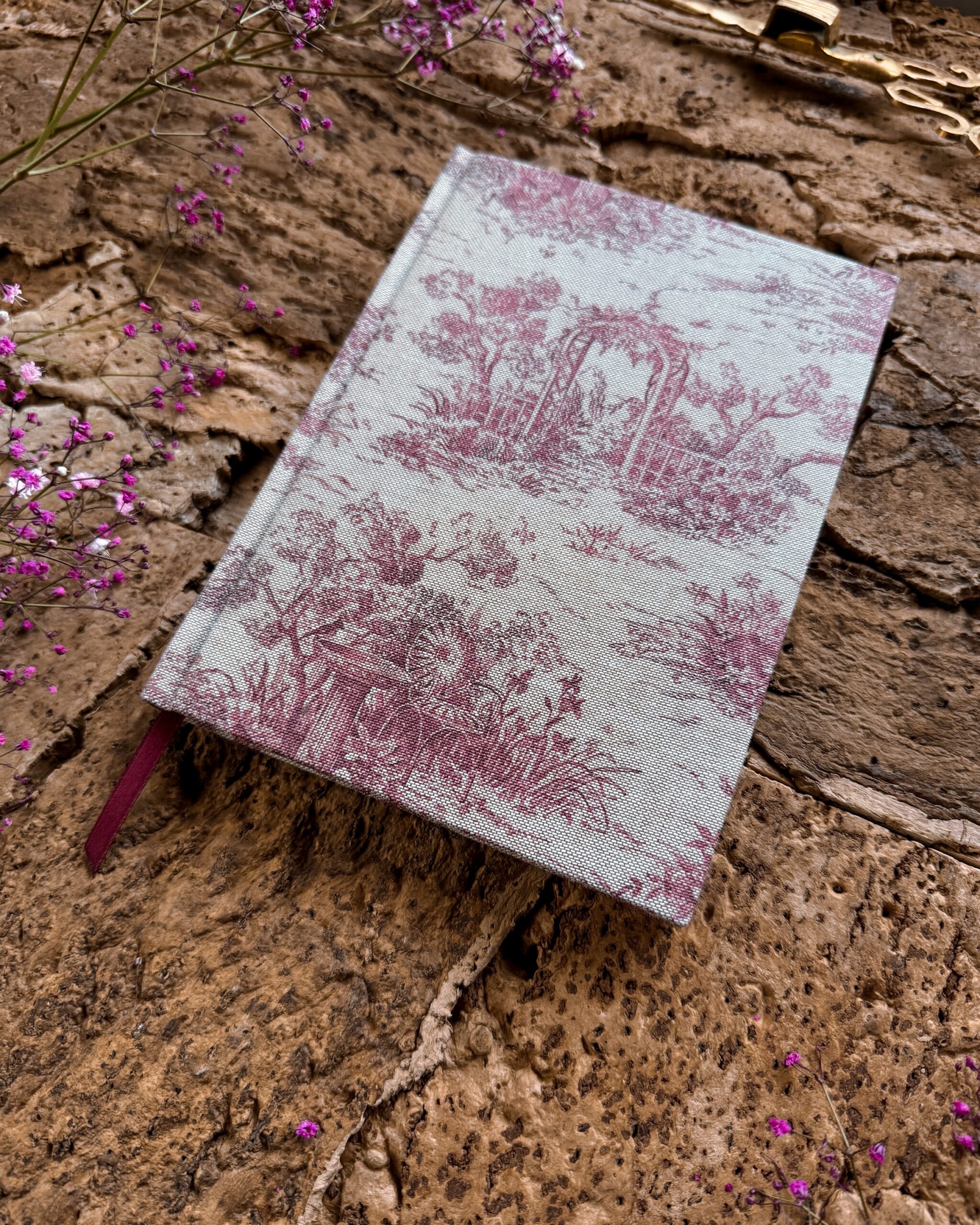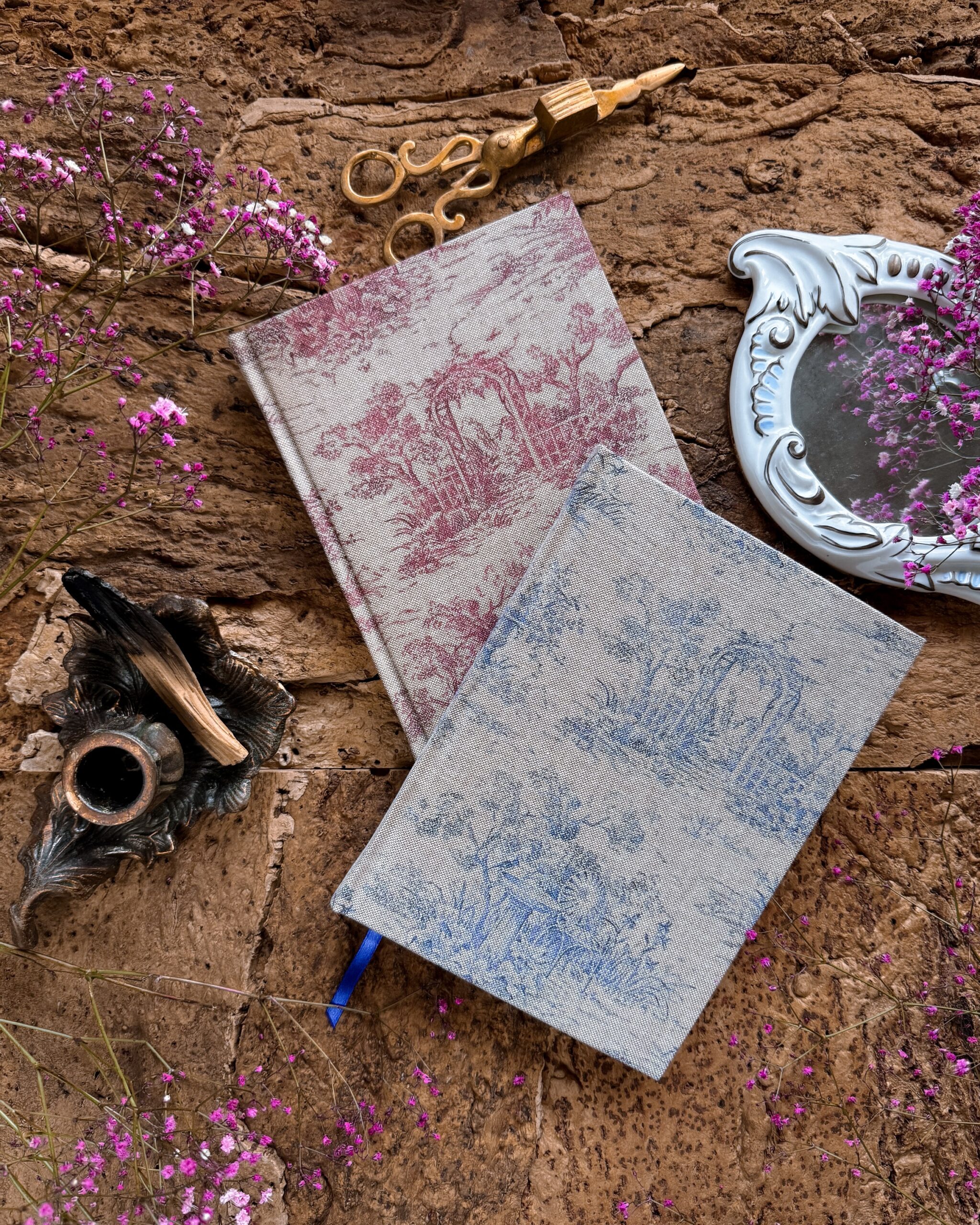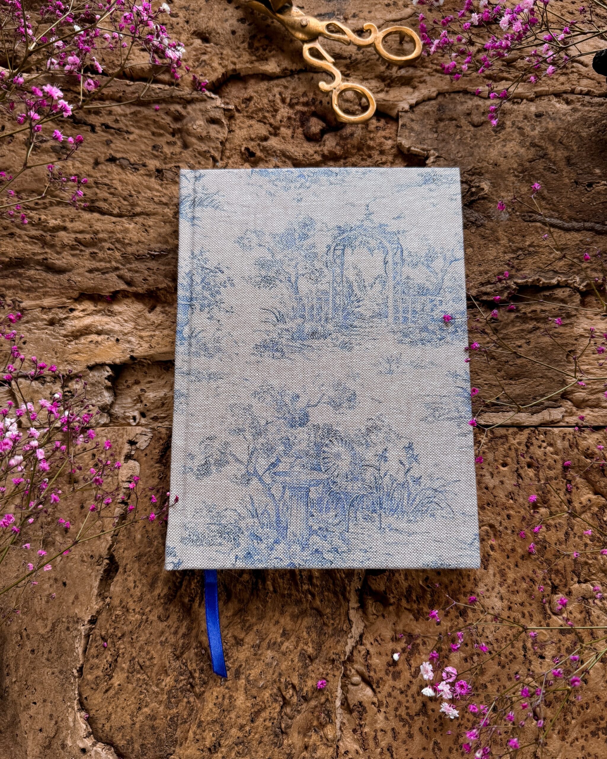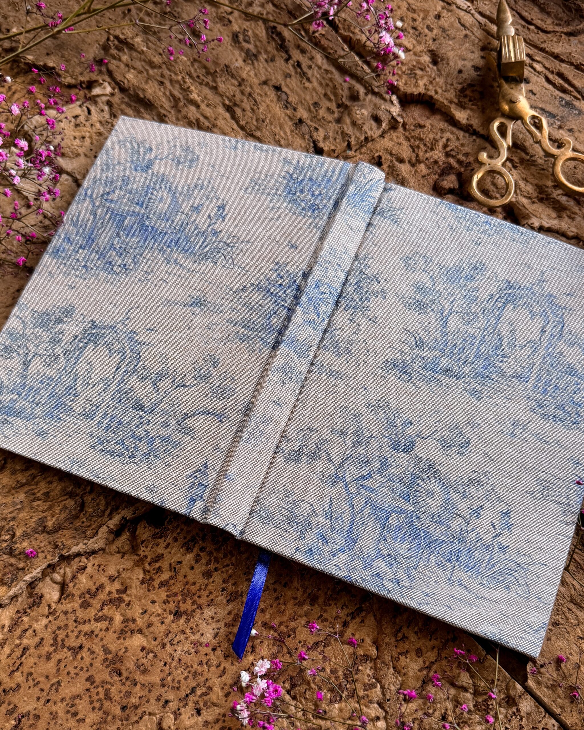 Notatnik ręcznie szyty i klejony, z kremowego papieru 100g, ubrany w lnianą oprawę z nadrukiem